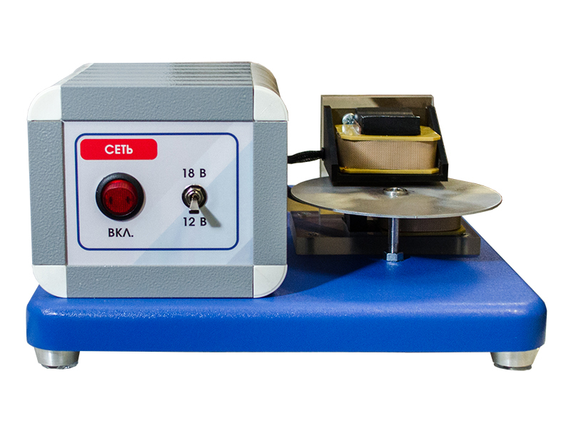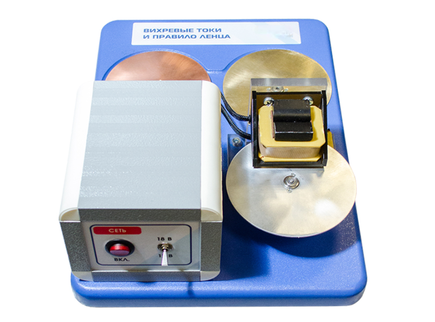 Макет действующий "Вихревые токи и правило Ленца" предназначен для демонстрации взаимодействия индукционного тока, возникающего во внешнем проводнике с током в катушке, и направлен на ознакомление с основами и сущностью физических процессов и явлений, происходящих в электрических цепях.