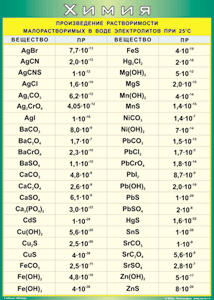Таблица "Произведение растворимости малорастворимых в воде электролитов при 25°С" (100х140 сантиметров, винил) - fgospostavki.ru - Нижневартовск