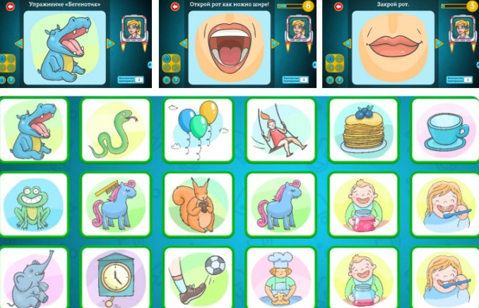 — Более 1600 тестов (в каждом разделе содержатся тесты на отработку определенных навыков: автоматизацию звуков, различение их на слух, развитие лексики)