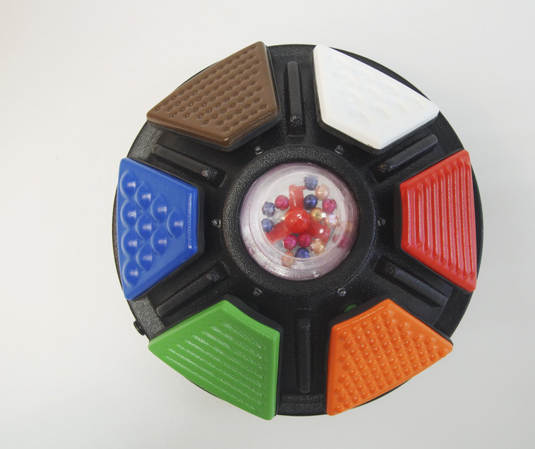 Текстурированная карусель – это игровой модуль, который представляет из себя аудио-визуальное устройство, с 6 съемными клавишами, разных цветов, разного рельефного рисунка на поверхности. Клавиши на устройстве можно нажимать, при активации какой-либо клавиши, будет воспроизводиться мелодичный, звуковой сигнал, который в свою очередь сопровождается визуальным эффектом (мерцанием огоньков на корпусе устройства). Питание устройства осуществляется от батареек типа АА.