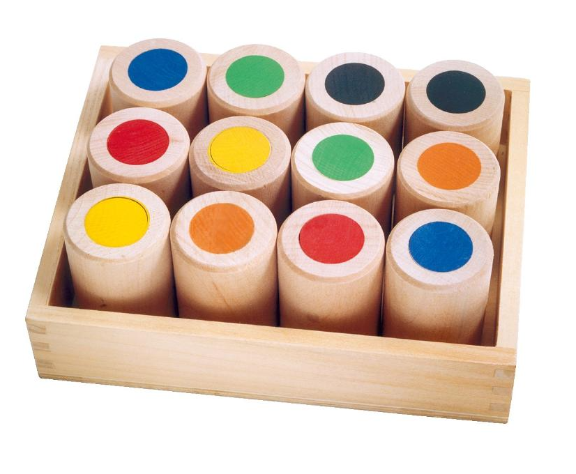 Набор состоит из 6 пар деревянных цилиндров разного веса.
