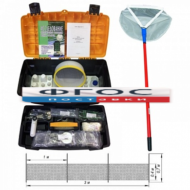 Набор дополнен сачком гидробиологическим специальным и сетью гидробиологической.