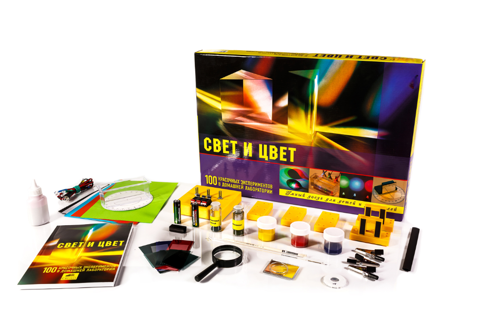 Набор «Свет и цвет» предназначен для всех, кого интересуют загадки цветного зрения. Руководство с комплектом оборудования позволяет провести более 100 красочных опытов, связанных с цветовым зрением и восприятием света.