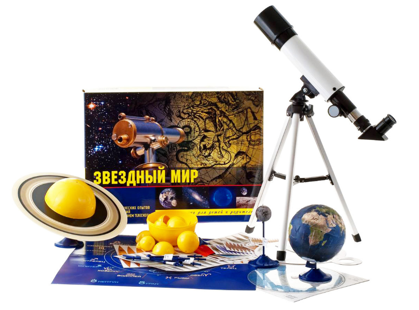 Набор «Звездный мир» предлагает Вам, вооружившись телескопом, узнать окружающий мир с новых, неведомых ранее сторон. Вы сможете наблюдать множество объектов, затерянных в просторах Вселенной. Звезды! Кометы! Спутники! Планеты! Границы обозримого мира отодвинутся в бесконечность. Набор позволяет собрать модель Солнечной Системы, провести 80 астрономических опытов и наблюдений с использованием телескопа.