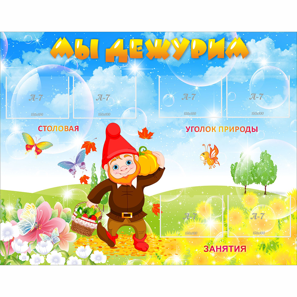 Красочный стенд позволяет вывешивать актуальную информацию: фото и имена детей, которые дежурят в столовой, на занятиях и в уголке природы. Информация при необходимости легко обновляется. Соблюдение графика дежурств учит детей быть дисциплинированными и ответственными.