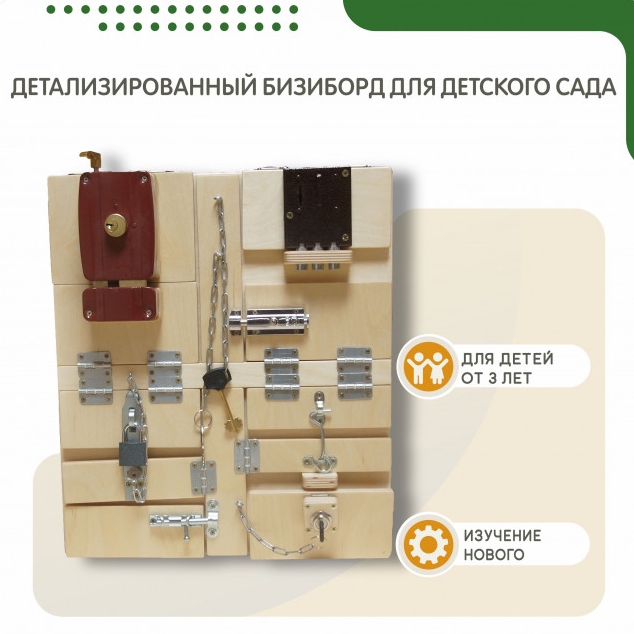 Бизиборд с замочками №1 - это яркий и практичный игровой элемент, выполненный из высококачественной древесины. В его основе - натуральные материалы, которые безопасны для здоровья ребенка. Кроме того, бизиборд обладает рядом преимуществ: