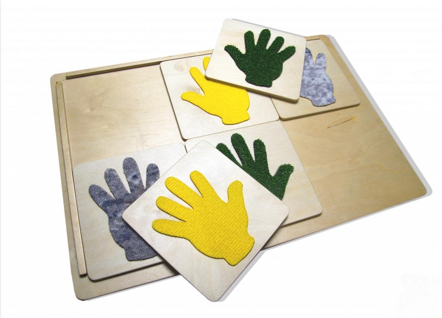 • Дети могут просто вначале познакомиться с игрой и трогать все поверхности. Затем обратите внимание детей, в чем отличия поверхностей друг от друга. Пусть ребенок будет описывать свои ощущения. А если не умеет говорить, то проговаривайте вслух вы. Можно потом закрывать глаза и на ощупь отличать поверхности. Дощечки двигаются в сторону, что вызовет особый интерес.