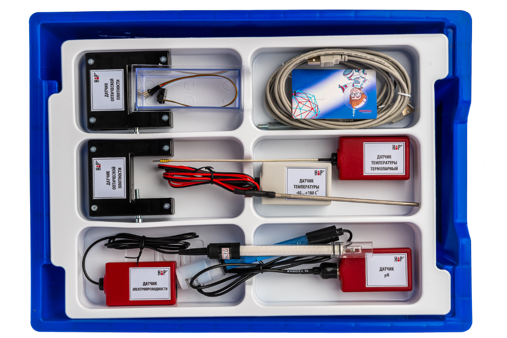 Цифровая лаборатория по химии для ученика – это комплект датчиков, на базе которых поочередно выполняются работы по измерению параметров окружающей среды и набор учебного оборудования, необходимого для выполнения химических опытов.