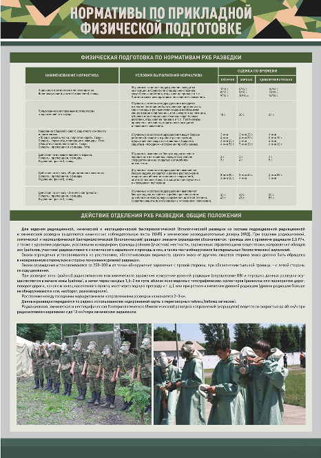 Стенд "Нормативы по прикладной физической подготовке, радиационной, химической и биологической разведке"