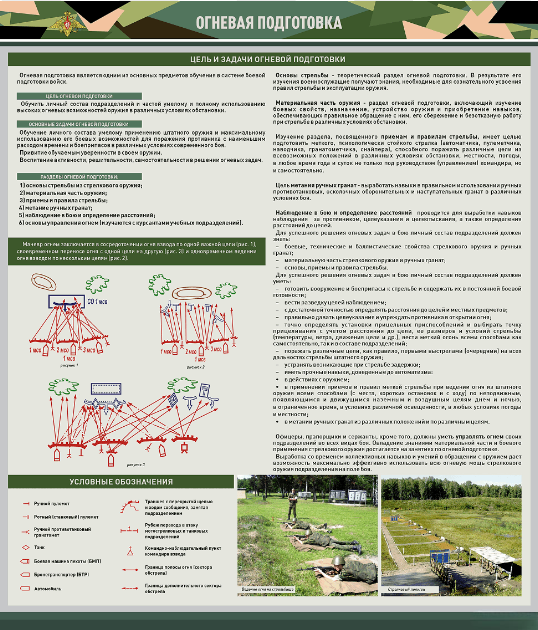 Стенд представляет собой информационную панель, на которой размещены основные положения огневой подготовки.