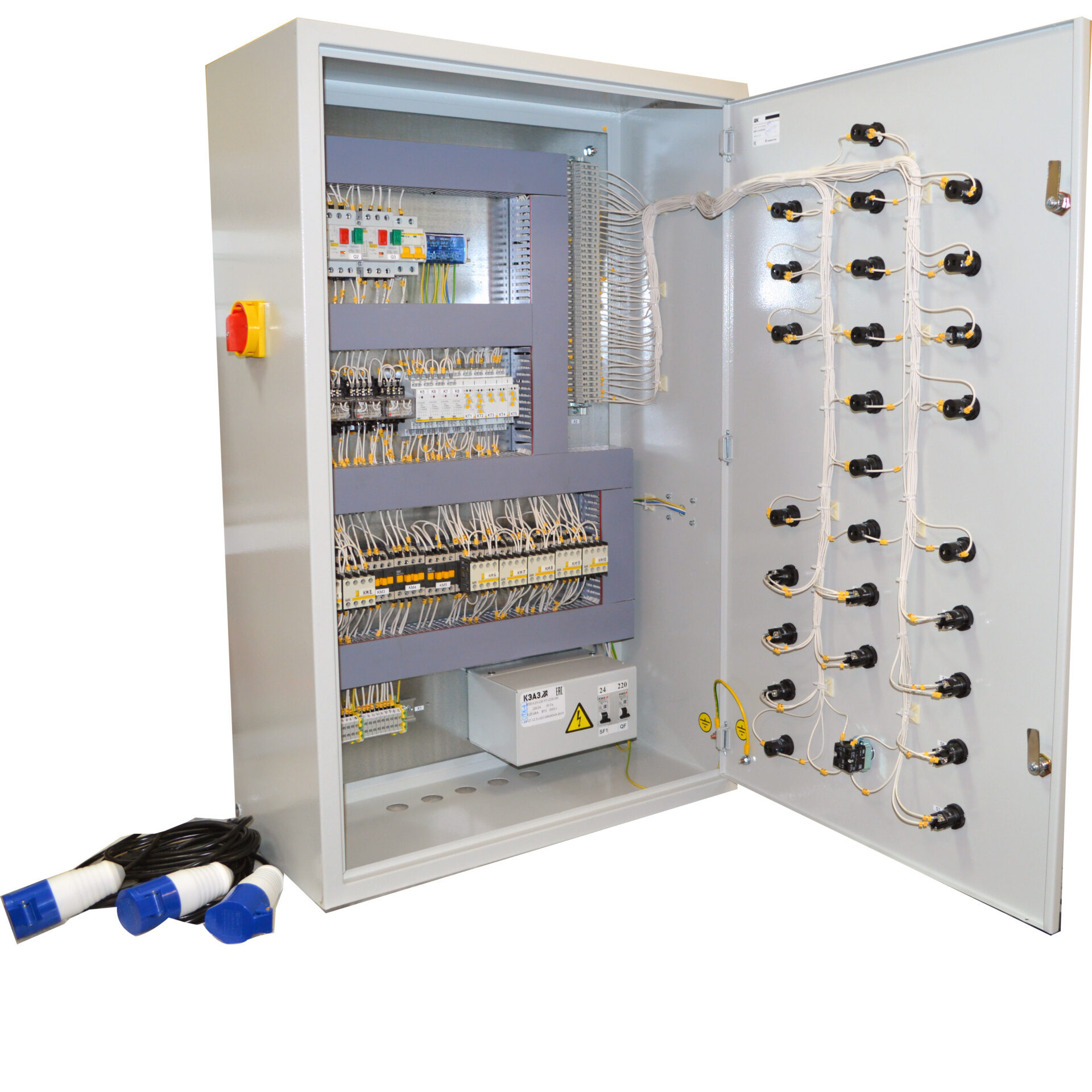 Стенд «Электромонтаж и наладка поиск неисправности» представляет шкаф электромонтажный в сборе, который включает в себя: