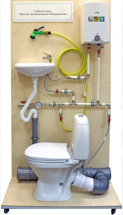 Учебный стенд «Монтаж сантехнического оборудования» предназначен для проведения практических занятий по монтажу сантехнического узла в специализированных учебных заведениях.