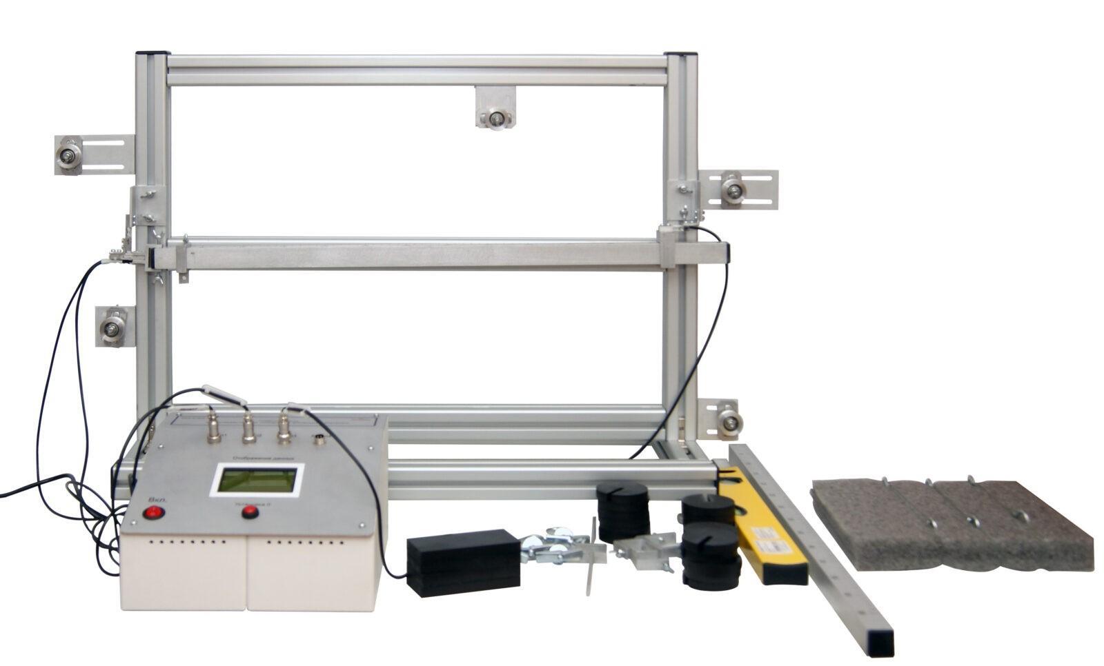 Учебный стенд позволяет моделировать балку, лежащую на шарнирно-неподвижной и шарнирно-подвижной опорах, и контрольную балку, защемленную одним концом; определять величины опорных реакций балок.