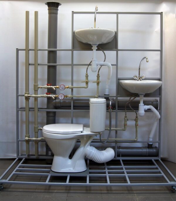 Учебный стенд «Система канализации многоквартирного дома» предназначен для лабораторно-практических занятий в средних специальных и высших учебных заведениях, для студентов обучающихся по направлению гидравлика, водоснабжение и водоотведение.