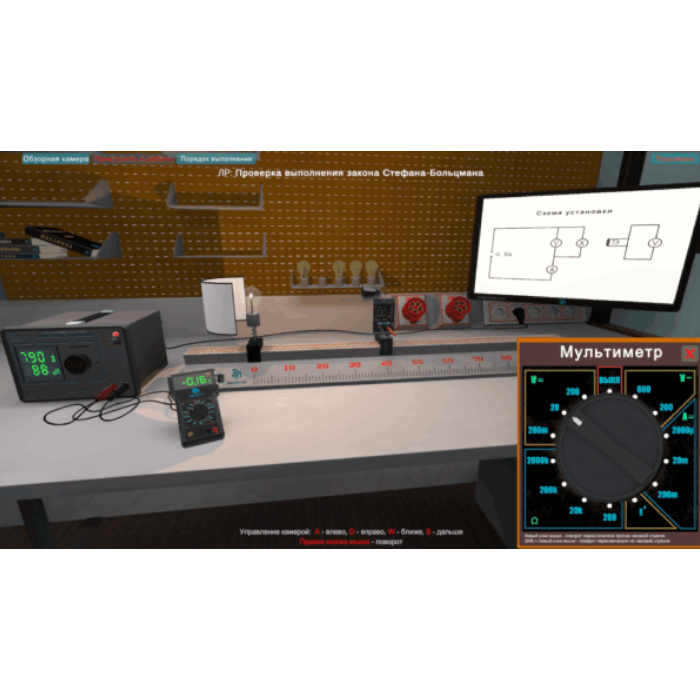 Виртуальная работа «Выполнение закона Стефана-Больцмана» выполняется в программном виртуальном продукте и предназначен для интерактивного выполнения лабораторной работы.